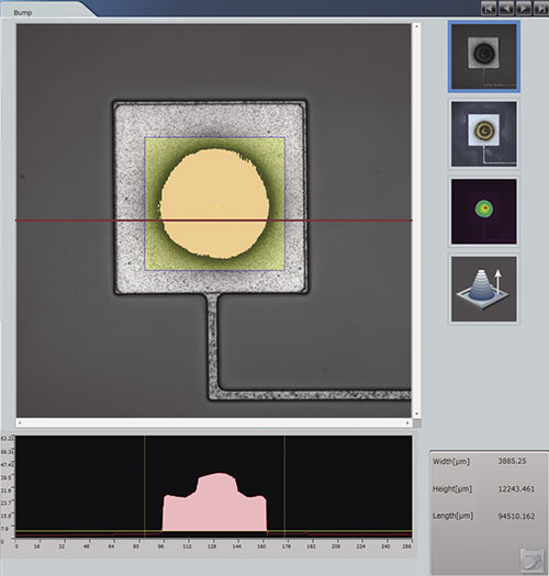 LEXT OLS4100 可以同時獲取三種不同類型的影像信息:真彩3D 影像、激光全焦點(diǎn)3D 影像和高度信息影像。 |