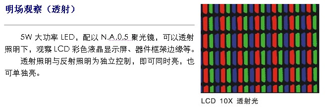 ★ 反(落)射照明器,柯拉照明系統(tǒng),帶視場(chǎng)光闌與孔徑光闌,中心可調(diào);帶斜照明裝置;90-240V寬電壓,單顆3W LED 6500K,亮度可調(diào)