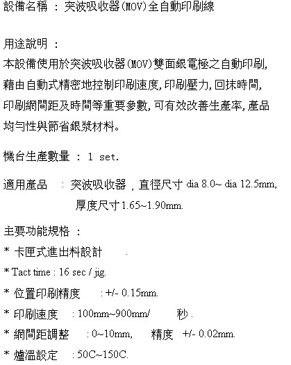 突波吸收器(MOV)全自動印刷線