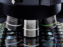 在深紫外線到可視、近紅外線觀察中發(fā)揮高性能的UIS2物鏡系列產(chǎn)品,與各種觀察單元組合,可以在一臺顯微鏡上進行明視場、暗視場、微分干涉、熒光、近紅外線、深紫外線等觀察。 觀察方法的切換非常簡單,只要從明視場、暗視場、選件鏡子單元三個位置選擇就可以。 |